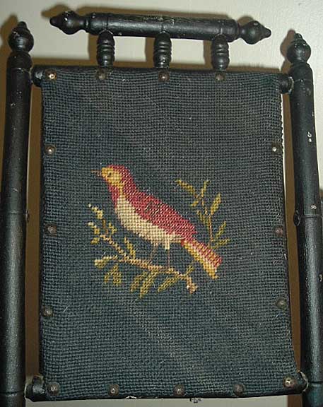 Antique Victorian Childs Needlepoint Rocker SONG BIRD