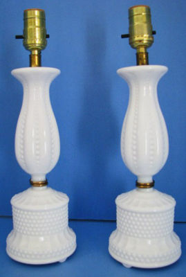 Pair Fenton White Milk Glass Hobnail Melon Table Lamps