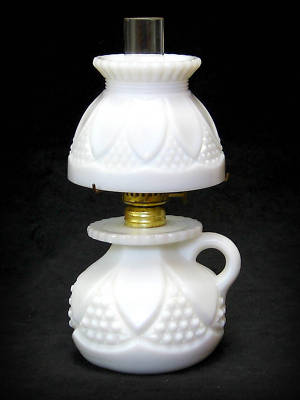 VINTAGE P&A, THE ACORN CO. MILK GLASS OIL MINI LAMP