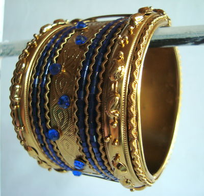 Title (ebay affiliate link): blue colour antique style cuff bracelet gold plated