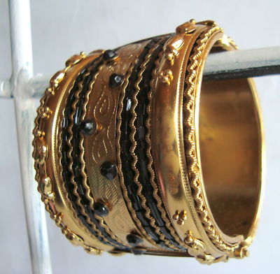 Title (ebay affiliate link): black colour antique style cuff bracelet gold plated