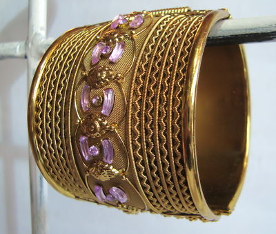 Title (ebay affiliate link): purple colour antique style cuff bracelet gold plated