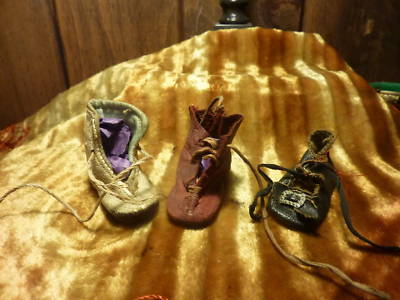 antique leather FRENCH / GERMANY porcelain DOLL shoes