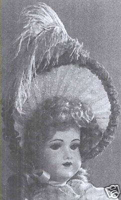 8-10-12"ANTIQUE DOLL FRENCH HEIRLOOM BONNET/HAT PATTERN