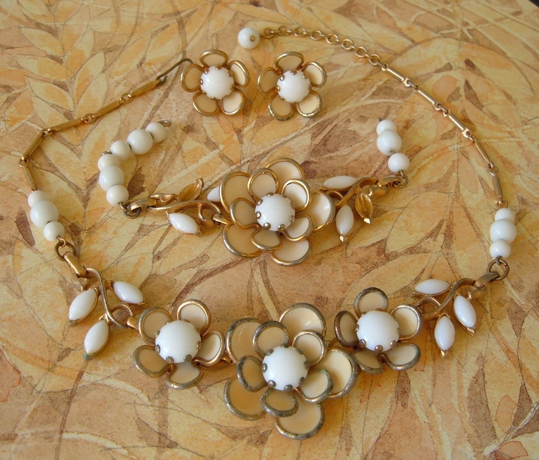 Vintage Poured Milk Glass Necklace Parure - TLC Repair