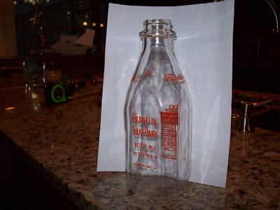 Franklin Lake Dairy glass 1 qt. milk bottle