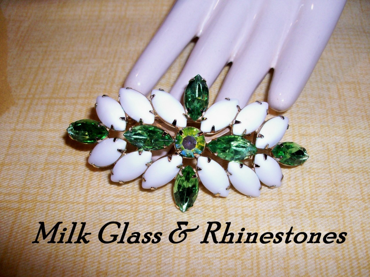 Vintage Milk Glass & Open Back Rhinestone Pin~JULIANA?