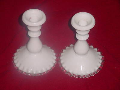 Vintage Fenton Milk Glass Silvercrest, Candle Holders