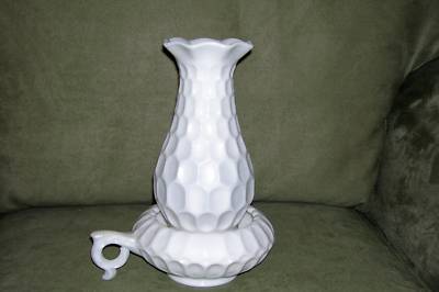 Vintage Fenton White Milk Glass Thumbprint Candle/Globe