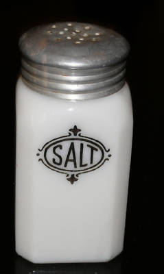 VINTAGE Hazel Atlas Milk Glass SALT SHAKER BLK SHIELD