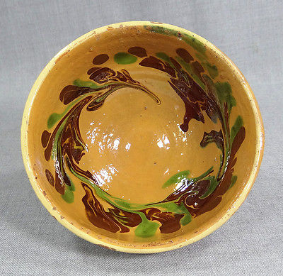 Title (ebay affiliate link): CIVIL WAR GLAZED REDWARE YELLOWARE POTTERY BOWL SIGNED DISH POT w/ FLORAL WREATH