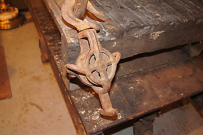 Old Cast Iron Pulley Hay Trolley Industrial Steampunk Hook Restoration Hardware