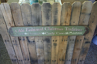 Primitive Wood Sign " Old Fashioned Christmas Traditions" Green