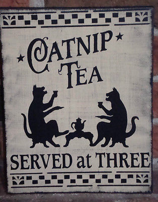 Title (ebay affiliate link): Primitive naive HALLOWEEN WOOD SIGN "CATNIP TEA SERVED AT THREE Hp Antique White