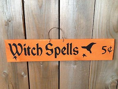 Primitive Witch Spells Wooden Sign Rustic Sign Rusty Wire Halloween Fall Decor