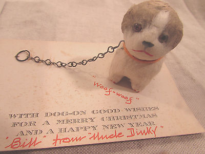 VINTAGE 1930'S RARE CHRISTMAS GREETING CARD IN BOX 3D DOG PUPPY GIFT ADORABLE