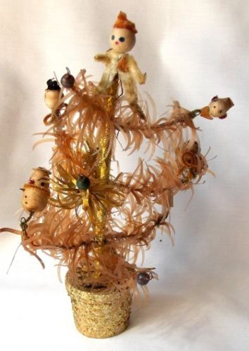 Title (ebay affiliate link): Antique Vtg JAPAN Cellophane Christmas Tree Spun Cotton Figures Mercury Gl Beads