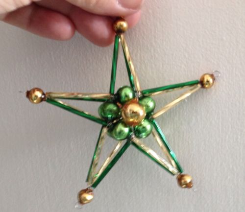Title (ebay affiliate link): Vintage Mercury Glass Hand Beaded STAR Christmas Ornament: GOLD/GREEN