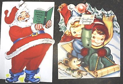 Title (ebay affiliate link): 2 VINTAGE UNUSED FLOCKED CHRISTMAS CARDS 1 WHITMAN SANTA, 1 MECAHNICAL STAND-UP