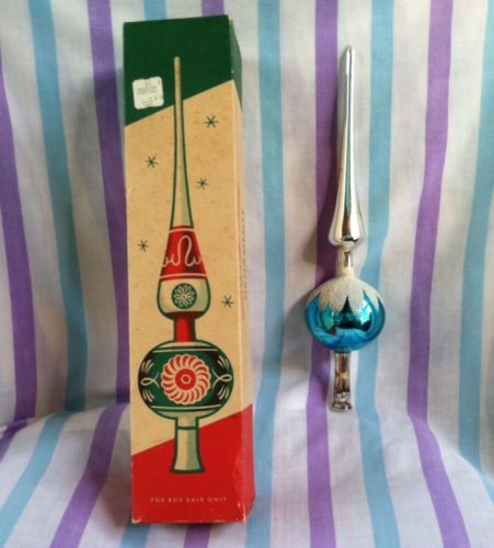 Title (ebay affiliate link): Vtg SHINEY BRITE Aqua Blue Mercury Glass Xmas Tree Topper Ornament Germany
