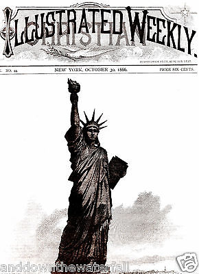 1886 Opening of The Statue of Liberty Statue Newspaper Vintage Antique Americana