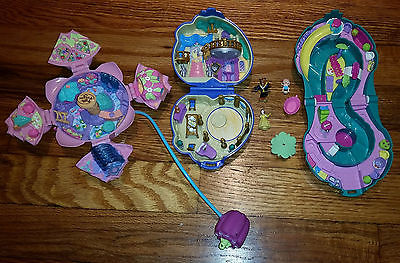 Title (ebay affiliate link): 2 POLLY POCKET COMPACT SETS W/ BABY, PIECES, BELLE & BEAST PLAYSET. WATER ACTION
