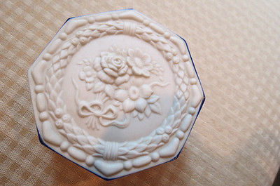 Capo-di-Monte Octagon bisque porcelain trinket box angels on all sides-floral