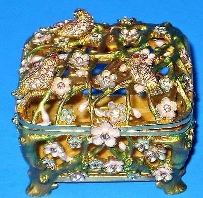 Bird Hand Painted Enamel Trinket Ring Box Faberge Inspired crystal rhinestone