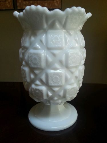 Westmoreland Old Quilt Footed Milk Glass Vase 6 5/8" Tall
