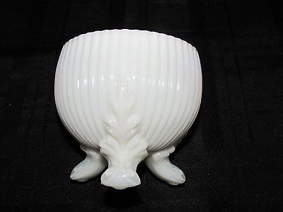 Vintage WHITE Milk Vaseline GLASS Candy DISH BOWL 3-Footed LINES LEAF Pattern 4"