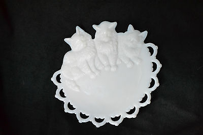 Vintage Milk Glass 3 Cats Plate with Lace Edging Excellent Condition