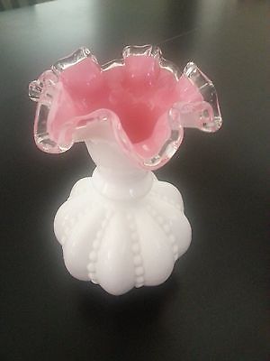 Vintage Fenton Pink and White Milk Glass Vase