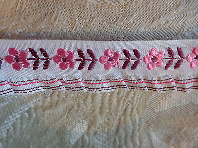 2 Yards Vintage Swiss Ruffled Embroidered Trim Pink Flowers ~ Doll Bear