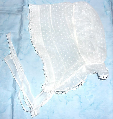 Antique Baby Bonnet Dotted Swiss with Lace Edging or for Doll