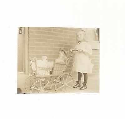 Title (ebay affiliate link): young girl with antique baby carriage and dolls original real photograph