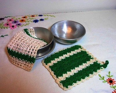 Title (ebay affiliate link): Vintage Children's Kitchen Linens, Hot Pad and Dish cloth - 1950s Small scale