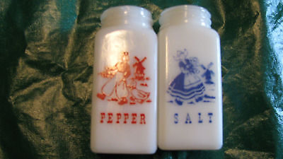 PAIR OF DUTCH SALT AND PEPPER SHAKERS MILK GLASS