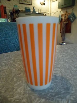 Vintage Mid-Century HAZEL ATLAS Milk Glass Tumbler/Glass Orange Stripes
