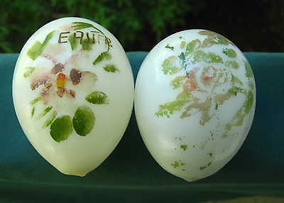 LOT of 2 vintage MILK GLASS EGGS Easter and floral Victorian?