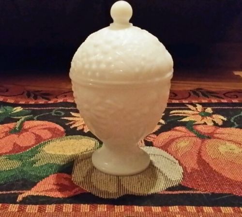 Title (ebay affiliate link): Vintage Avon Milk Glass Lidded Candy Dish/Trinket Box/Jewelry Holder/Odds & Ends