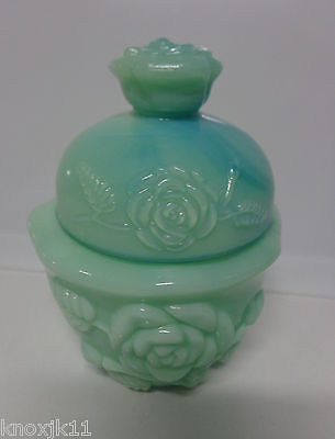 AVON 1971 Green Slag Swirl MILK GLASS BOTTLE Field Flowers Powder Sachet 4" EVC!