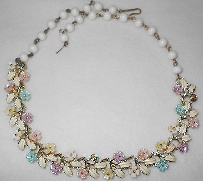 Vintage 50s Coro Milkglass Enamel Flower Necklace