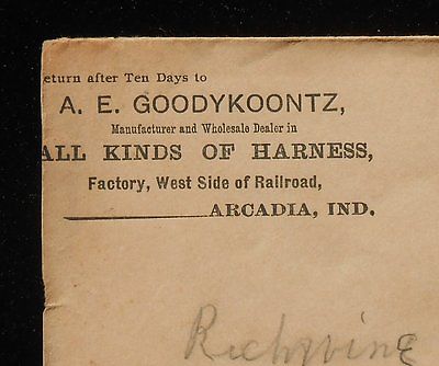 1900 Postal History A. E. Goodykoontz Dealer Harness Factory Railroad Arcadia IN