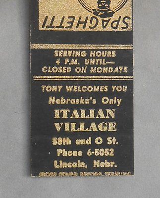 1940s Matchbook Tony Welcomes You to Italian Village 58th and O St. Lincoln NE