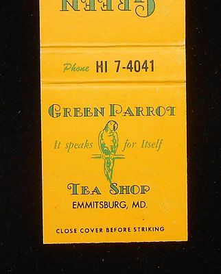 1950s Matchbook Green Parrot Tea Shop Leone Brown McNair Emmitsburg MD Frederick