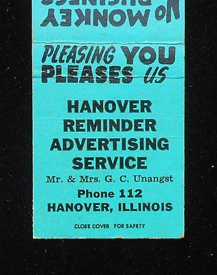 1950s Matchbook Reminder Advertising Service G. C. Unangst Phone 112 Hanover IL