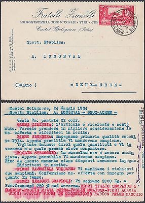 Italy 1934 Used stamp on postcard ( Fratelli Zanelli ) to Belgium........A8019