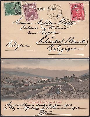 Bolivia 1903 Used stamps on postcard ( La Paz ) to Belgium.......A8080