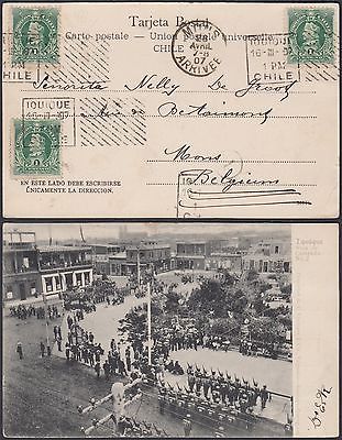 Chile 1907 Used stamps on postcard ( Iquique ) to Belgium.......A8089