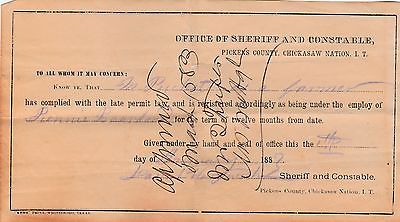 Title (ebay affiliate link): 1887 Pickens County Chickasaw Nation Work Permits Inspector signed